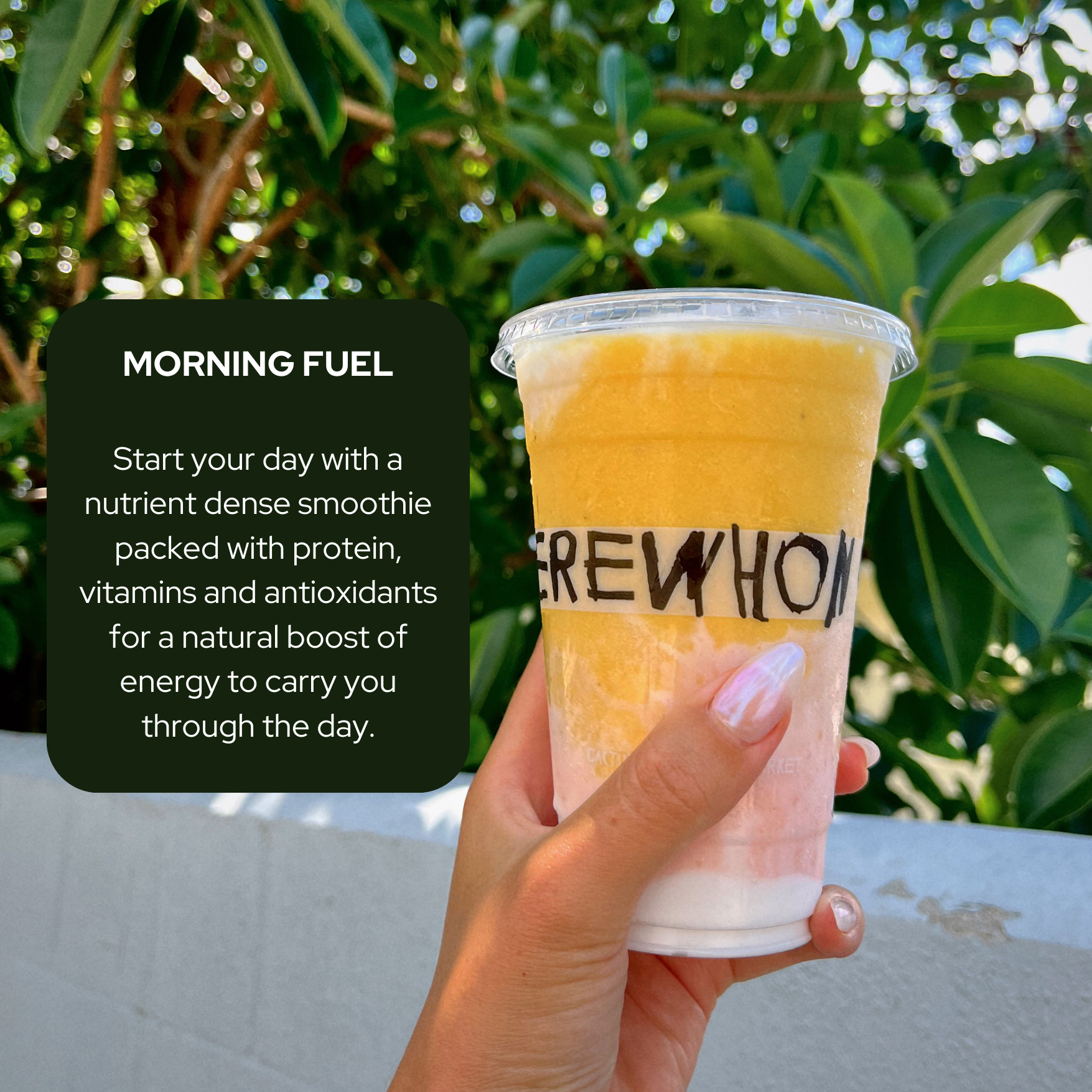 In lieu of or in addition to your morning coffee, start your day with a nutrient dense smoothie packed with protein, vitamins and antioxidants. This natural and healthy boost of energy will help carry you through the day.